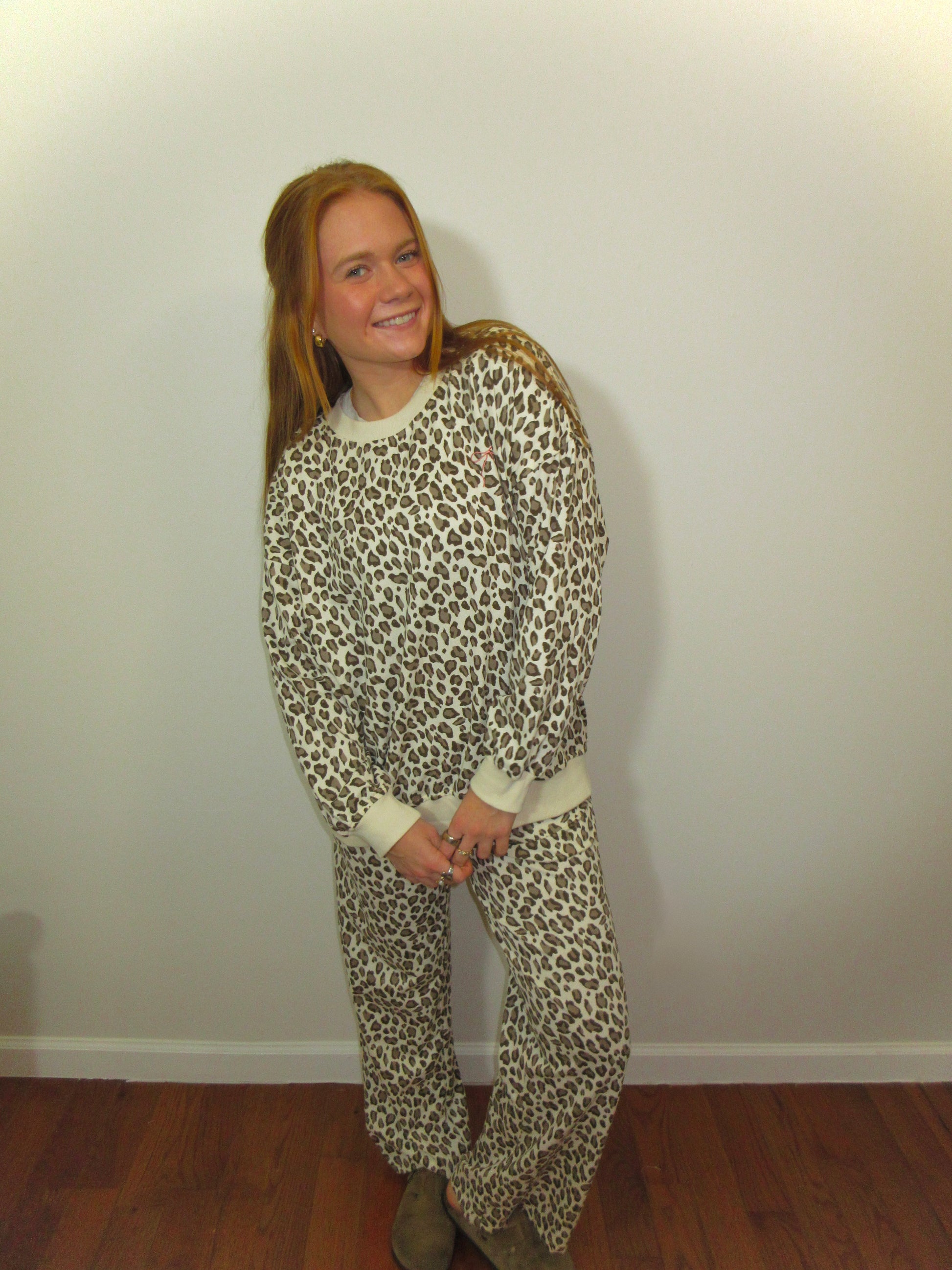 Stay cozy and irresistibly cute in our Little Leopard Bow Set. This soft matching set features an allover cheetah print that’s playful yet totally wearable for everyday lounging. With its comfy crew neckline, stretch cuffs, and easy wide-leg pants, it’s the perfect blend of fierce + cozy. Whether you’re relaxing at home, running errands, or just living your best comfy-girl life, this set keeps you stylish without even trying.